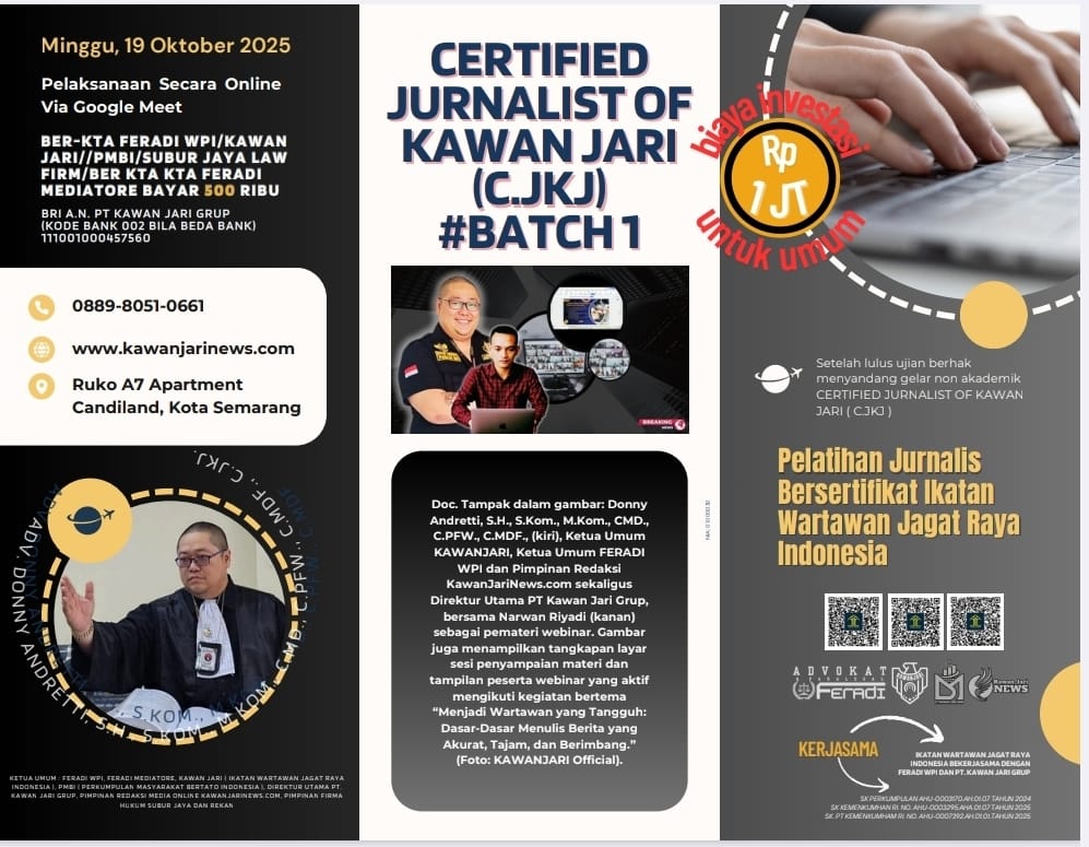 Semarang, 6 Oktober 2025 — Ikatan Wartawan Jagat Raya Indonesia (KAWAN JARI/IWJRI) bekerja sama dengan PT Kawan Jari Grup akan…